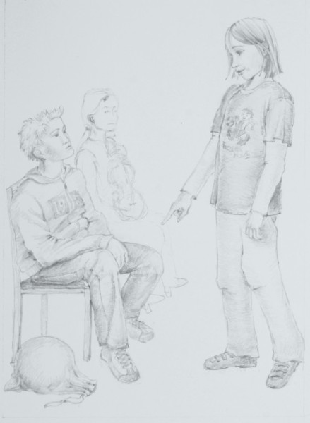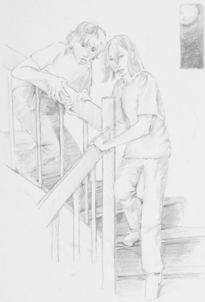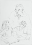 Die beiden Hauptdarstellerinnen sollen zwei bestimmten Mädchen ähneln. Deshalb fotografieren wir diese Beiden erstmal in den bestimmten Positionen und Haltungen, wie sie später auf dem Bild entstehen sollen. Das ist natürlich immer ein Spaß für die Beiden, auch für andere Kinder, die mit auf den Bildern sein sollen. Manchmal ist es aber eine ganz schöne Herausforderung. Dann brauchen sie eine gehörige Portion schauspielerisches Talent.